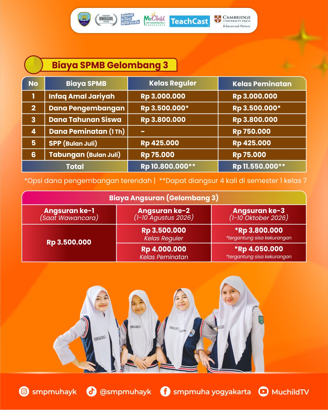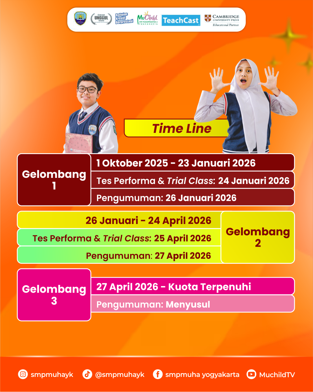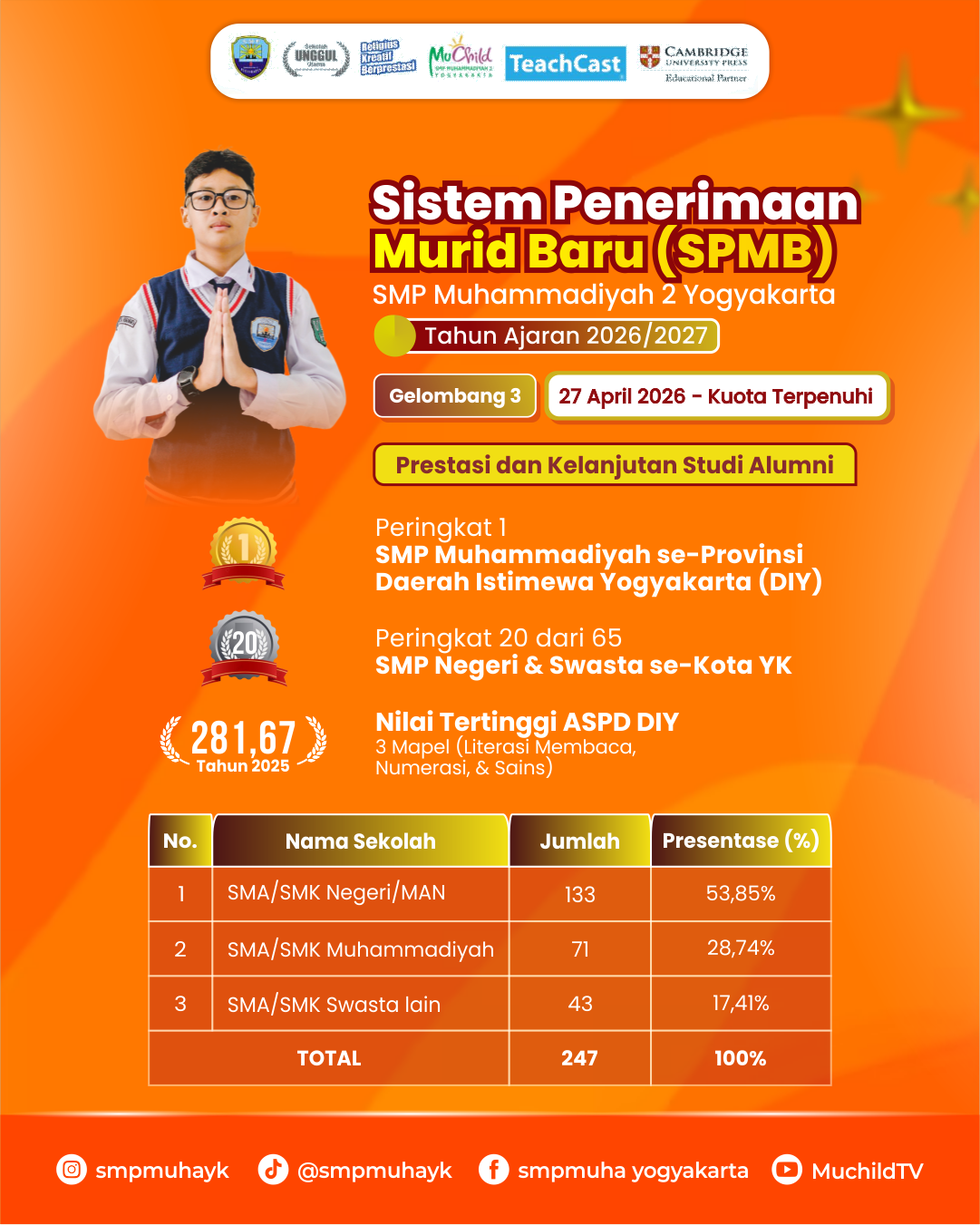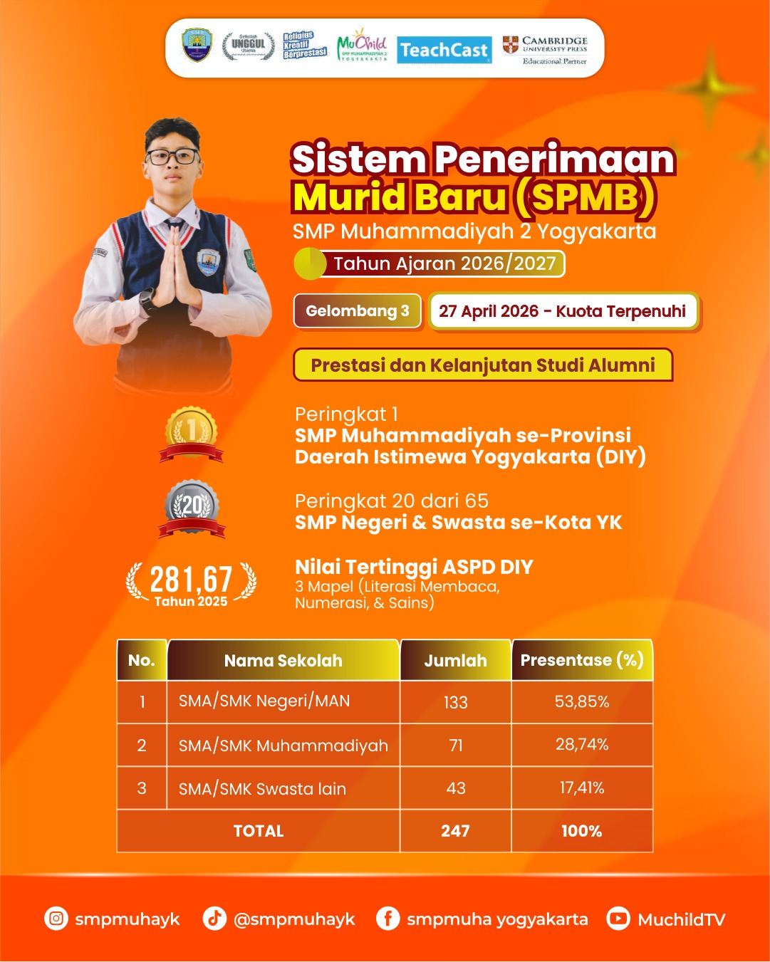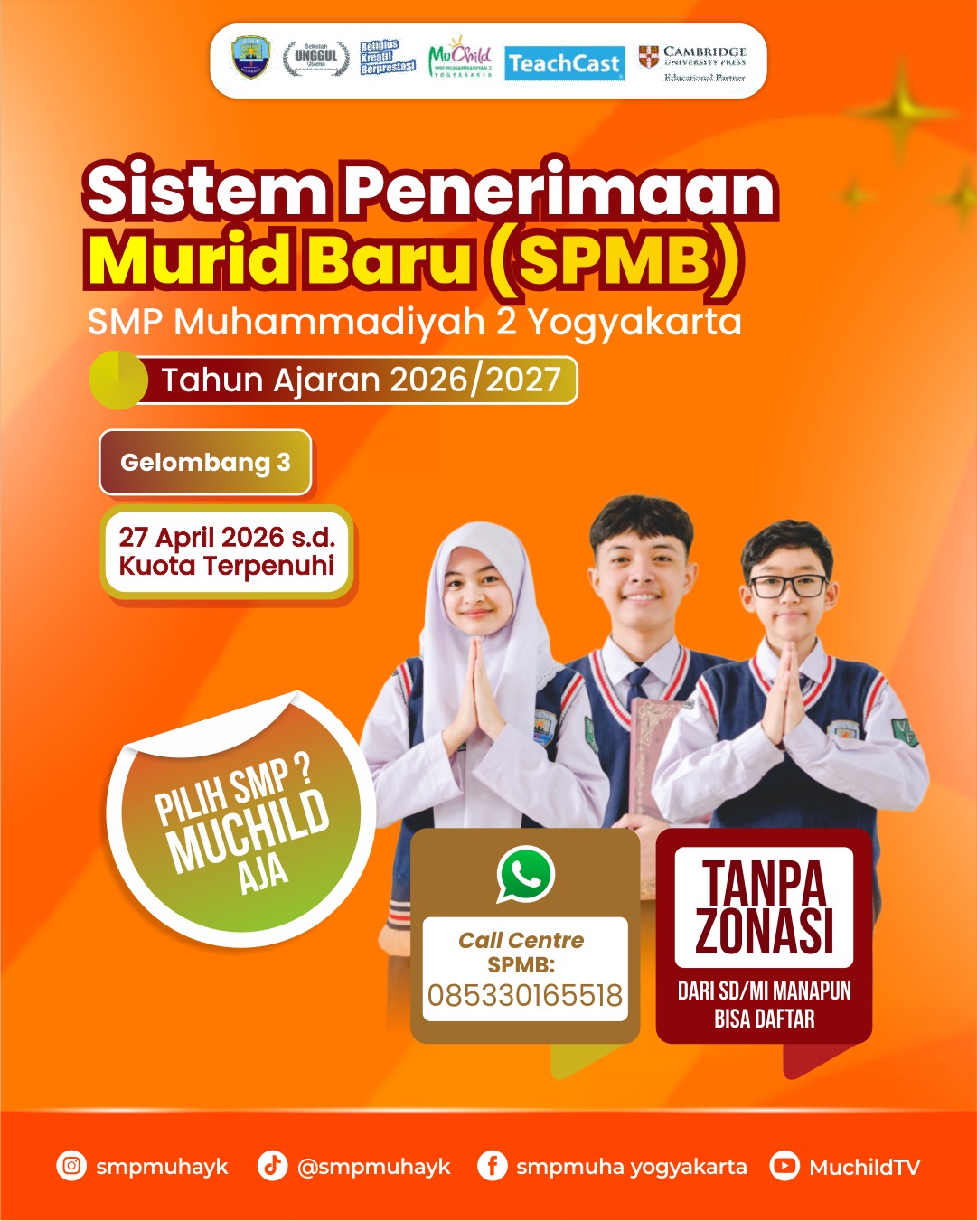| Kami sampaikan bahwa : SPMB SMP Muhammadiyah 2 Yogyakarta (Muchild) Gel. 1 Mulai 01 Oktober 2025 | |